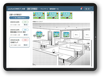 複数店舗で掲示する販売促進ツールを計画通りに展開するためのシステムです。